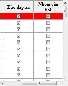 - Trước khi tạo các mã đề, chúng ta cần xác định các câu hỏi nào không cần “đảo đáp án” bằng cách click vào câu hỏi đó và bỏ đánh dấu vì đôi khi có những câu trắc nghiệm chúng ta không thể đảo thứ tự các đáp án. Ví dụ như câu có ý: Cả a và b đều đúng, .....
